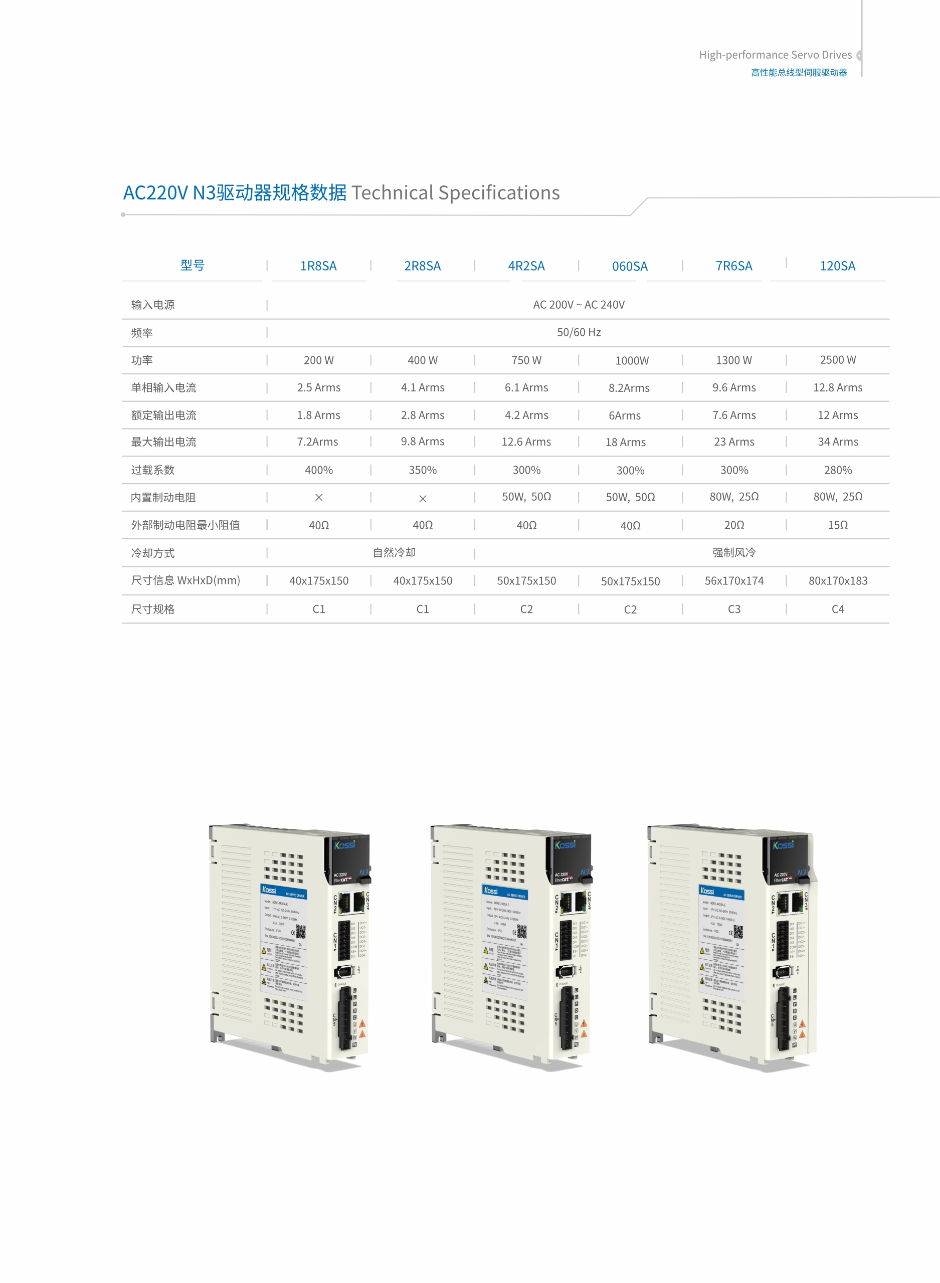 產(chǎn)品說明:N3系列伺服驅(qū)動器比N2體積縮小20%,縮小機(jī)柜體積。支持0.2kW-3kW,